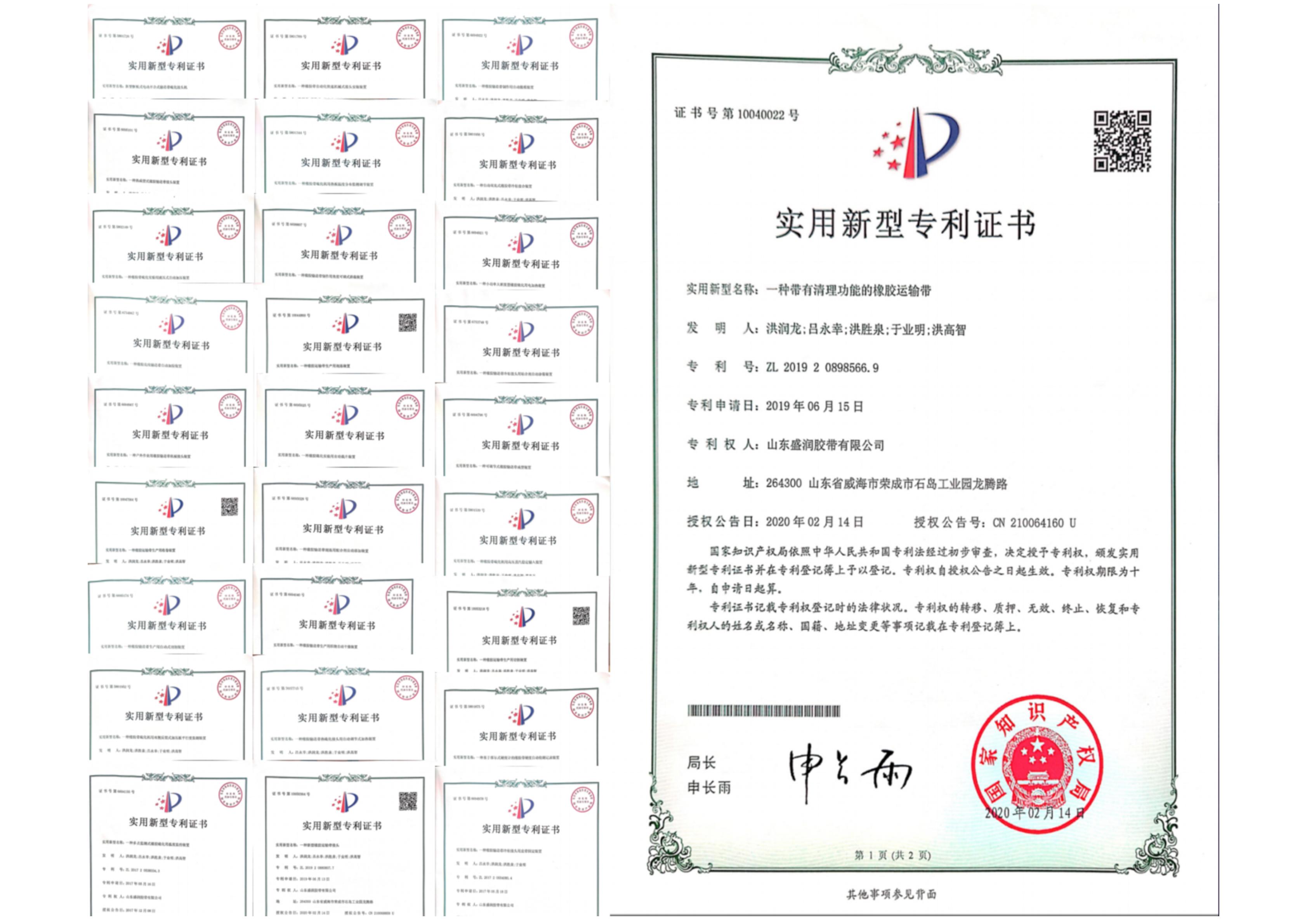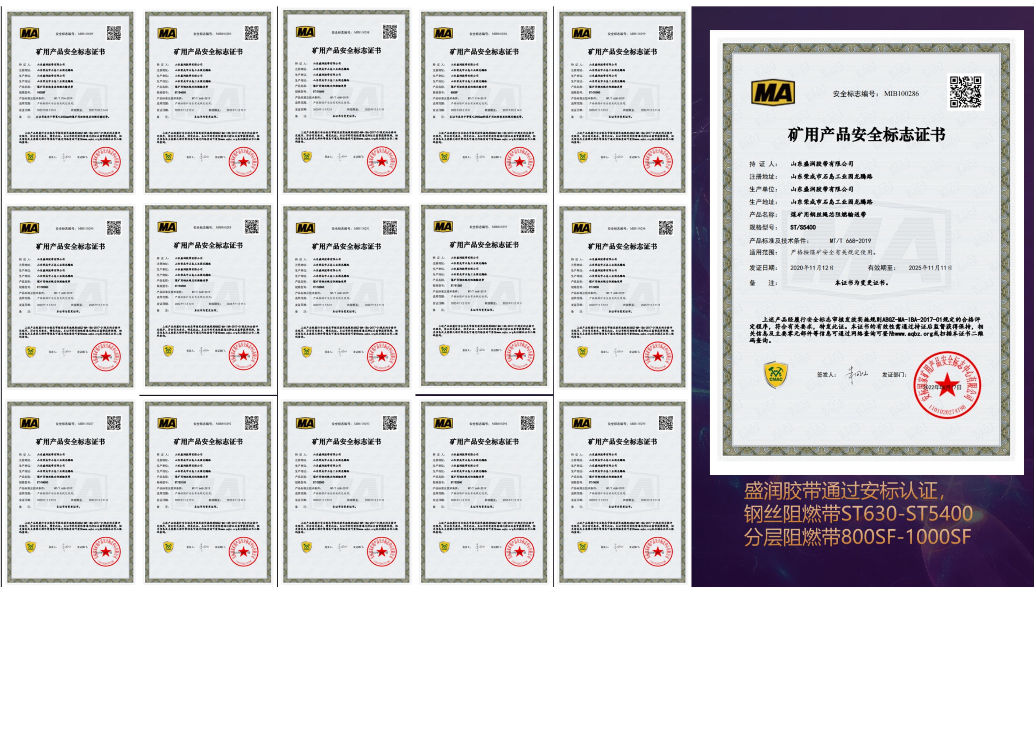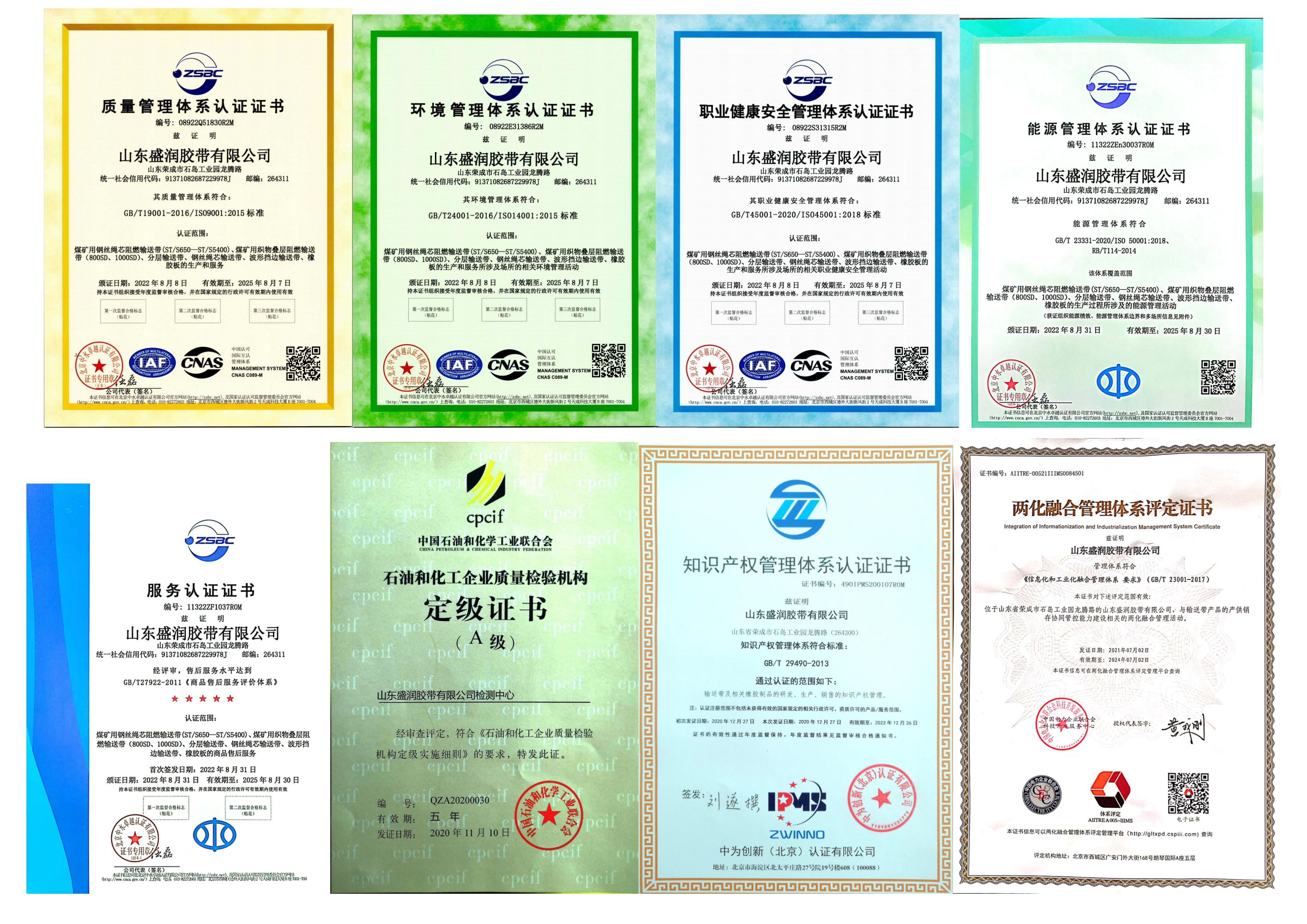 山东盛润胶带有限公司创建于2009年。公司注册资金3亿元,公司位于山东荣成石岛工业园内。现为山东省科技型技术企业、山东省“专精特新”企业、山东省高新技术企业、工产业智能化改造标杆企业、培育知识产权优势企业等。“盛润”牌商标荣获威海市知名商标。公司拥有国家重点橡胶材料实验室检验资质,具有“中国石油和化学工业联合会A级”检验机构证书。公司通过了ISO9001质量管理体系、ISO14001环境管理体系、ISO18001健康管理体系认证,ISO50001:2018能源管理体系、GB/T27922-2011商品售后服务评价体系、GB/T29490-2013知识产权认证体系,GB/T23001-2017两化融合管理体系等认证,并保证了体系的良好运行。